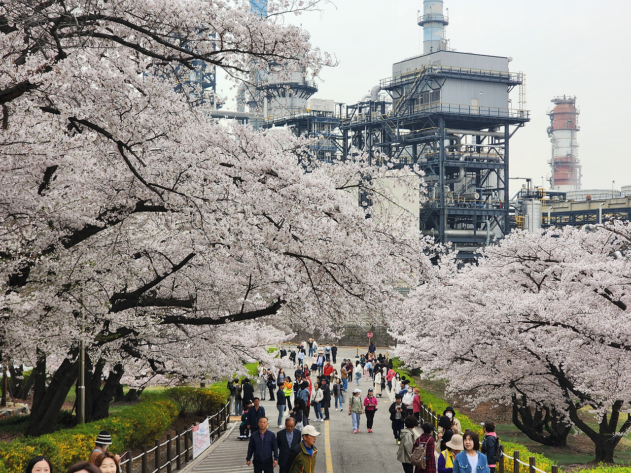 SK인천석유화학 벚꽃동산은 4월 7일 ~ 4월 12일 (약 6일간 한정 운영) 시민들에게 임시 개방됩니다.